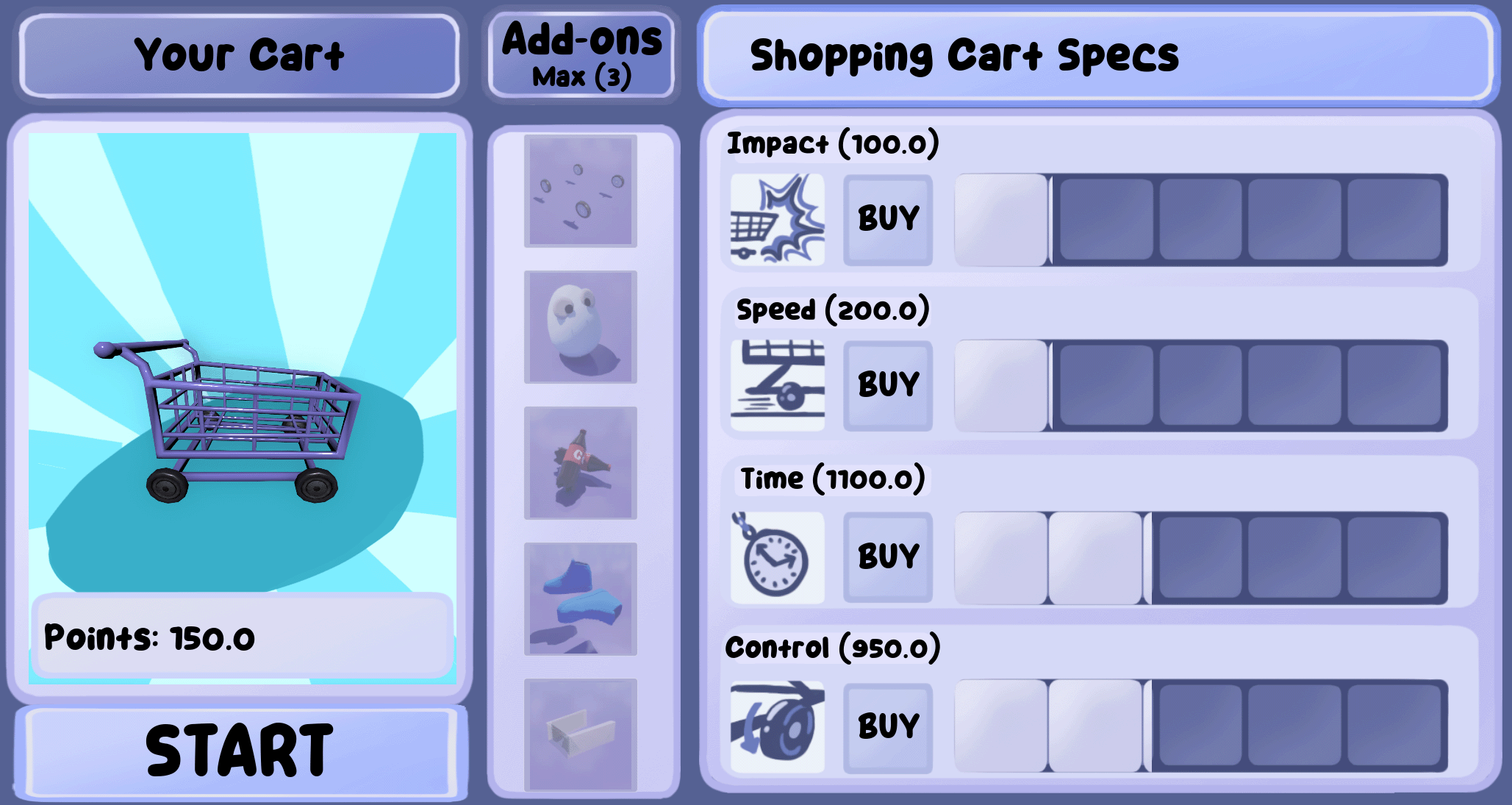 Go shopping with your magic time-traveling shopping cart. Only grabbing ABSOLUTE NECESSITIES! Crash into shoppers and upgrade your cart by gathering points and items around the level!